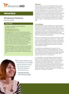 Serving a largely low-income area, Whistelstop Pediatrics faces ongoing financial pressure as nearly 80% of reimbursements come through Medicaid. With 2014 EHR mandates on the horizon, the clinic initiated a search for an automation solution that would simultaneously address clinical reporting and unique practice management needs. AdvancedMD provided the flexibility required and allowed the clinic to phase the system in first with practice management that significantly improved efficiencies in scheduling, billing and claims. The completely integrated EHR will smoothly phase in ahead of mandated Medicaid reporting requirements in 2014.